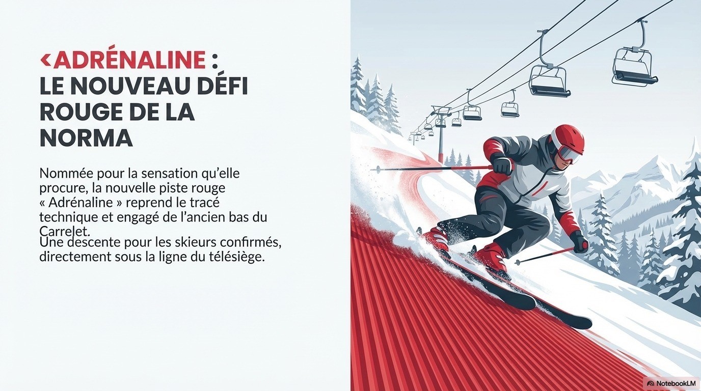Voici la réorganisation majeure du domaine skiable de la Norma, marquant l'évolution la plus significative du plan des pistes depuis deux décennies. La transformation principale concerne la piste de l'Arlette, dont le tracé a été réduit pour laisser place à une nouvelle section baptisée piste des Mélèzes. Parallèlement, la piste du Carrelet a été simplifiée en devenant intégralement bleue et en s'arrêtant désormais à la gare supérieure de la télécabine. La portion inférieure située sous le télésiège a été renommée piste Adrénaline, conservant son niveau de difficulté rouge initial. Ces ajustements géographiques et techniques visent à moderniser la navigation des skieurs sur la station.