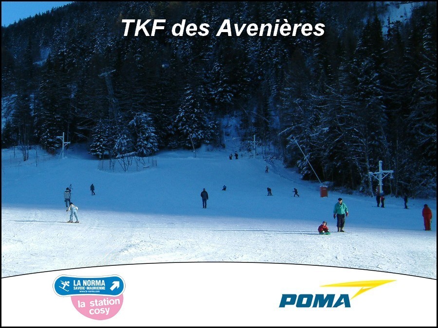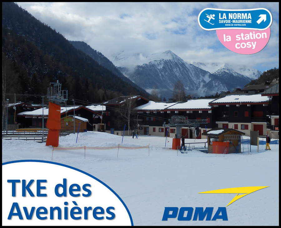 En bordure des résidences de la Norma, le téléski à enrouleurs des Avenières dessert donc à merveille l'espace débutant ainsi que le jardin d'enfants, tout en permettant un accès très confortable aux autres ascenseurs du front de neige.